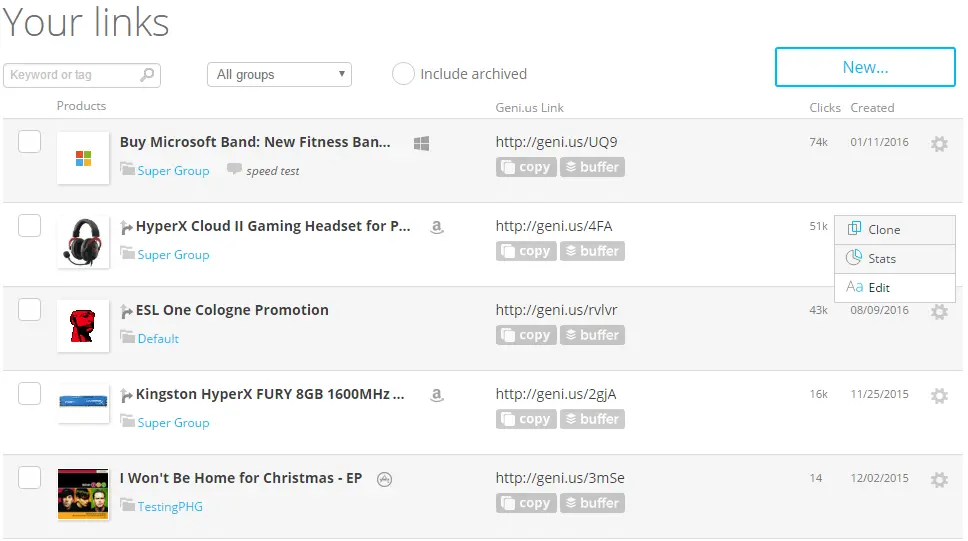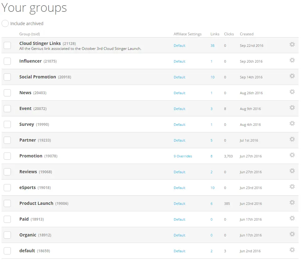 When you’re creating a lot of links and promotions, it gets tough to keep track of which links were used for what campaign. Use Groups to sort your links by campaign, product type, and more.