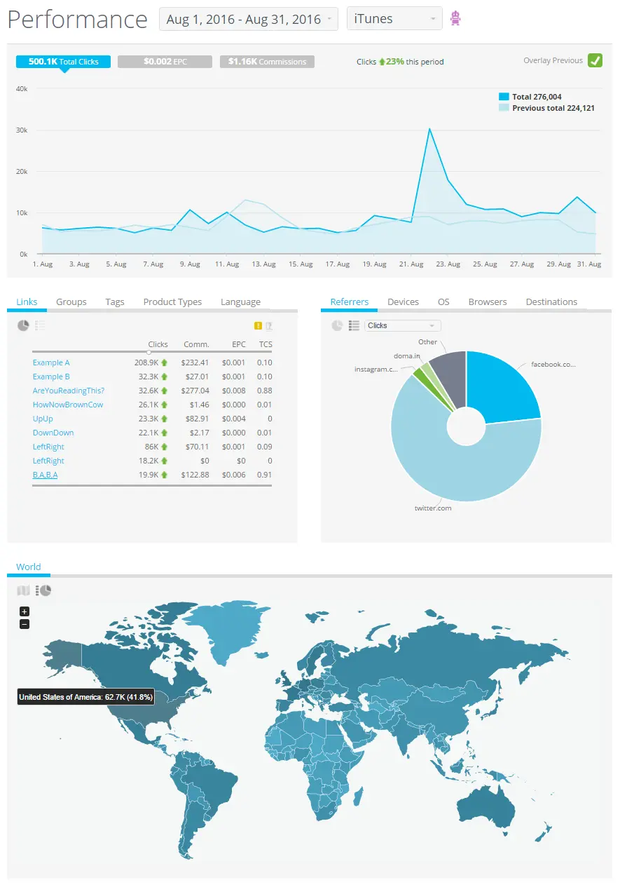 You can also view analytics by Group, seeing how the campaign or product type is doing overall rather than just per link.