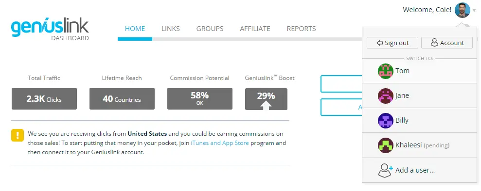 Explore Groups.Team collaboration is great, but cluttering up your team’s workspace is not. Add your coworkers to your account but keep their links and reporting metrics separate.